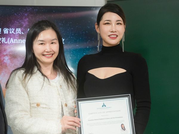 北美艺术家协会刘淑娥荣誉会长对本届大赛表示祝贺,希望加拿大全球少儿文化艺术基金会越办越好,并在现场接受基金会荣誉主席聘书。